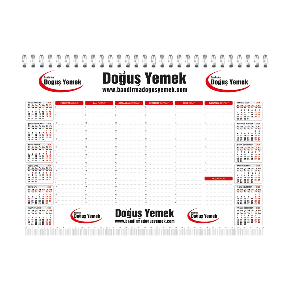 * Cilt: Spiralli * Kapak: 300 gram Amerikan Bristol * Selefon: Mat / Parlak * İç: 80 gr 1. Hamur * Yaprak Sayısı: 52 * Farklı ebat ve özelliklerde üretilebilir.