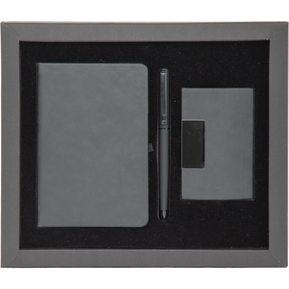 * Termo Deri Defter 9,5 x 14 cm (İstiklal) * Deri ve Metal Kartvizitlik (KVZ-007) * Metal Kalem Roller (0555-490) * Kutu: Karton